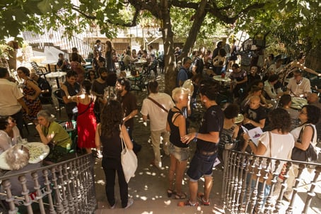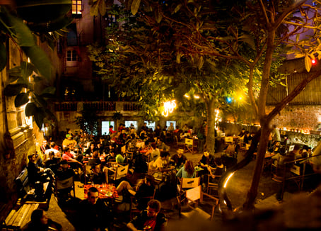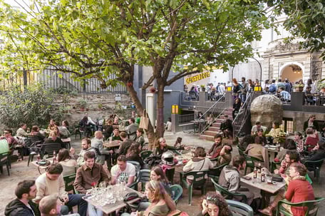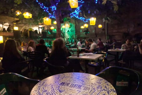 A few steps from the Palau de la Musica Catalana, there is the bar of the Antic Teatre, a cosy corner secluded from the hustle bustle of city life. You can sit under the trees on a hot day, enjoying the shade in the garden. Just relax drinking a cool beer while reading, working on your laptop or simply let your thought flow...