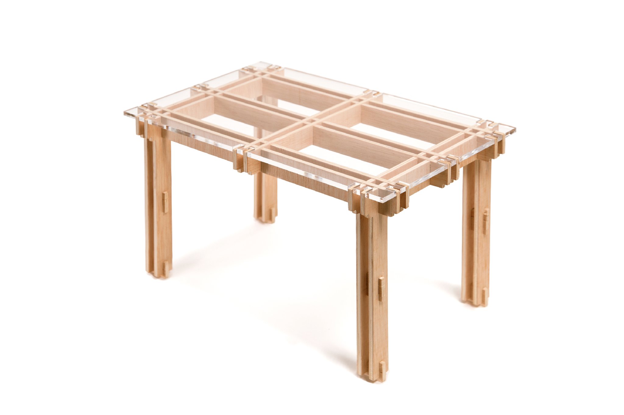 sinTo (Sin Tornillos, the Spanish for Without Screws) is a plywood table that can be put together without any screws by anyone, making it easy to assemble or take it apart.